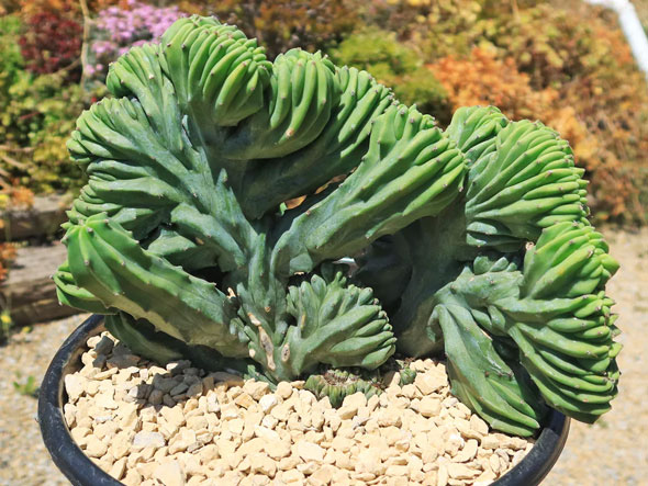 Crested Euphorbia grafted on a rootstock; bright coral-like crest — sap irritant. Plant Common Name Coral Cactus Scientific Name Euphorbia ...