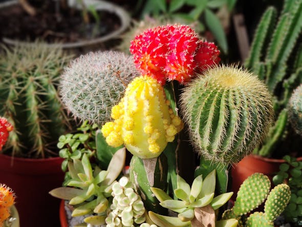 Grafted scions on hardy rootstock — colorful and unusual. Plant Common Name Grafted cactus Scientific Name Various grafted combinations (Gymnocalycium, ...