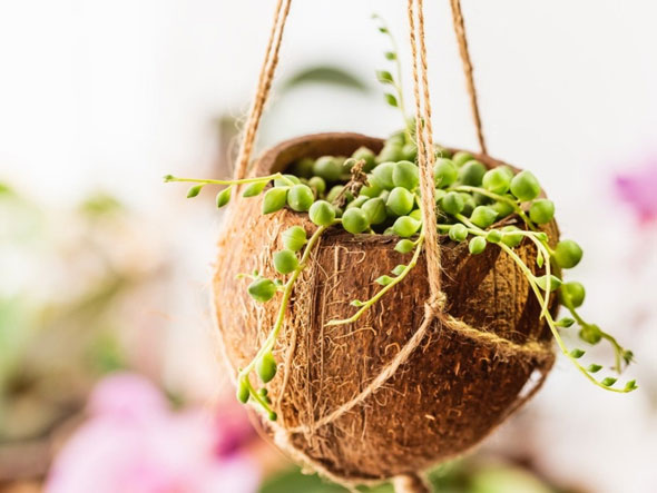 Hanging planters – repurposed coconut shells